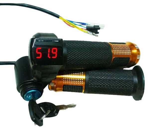 Electric scooter throttle + handle + ignition lock on the handlebar. Universal spare part – suitable for all electric scooters to replace the throttle roller / throttle knob / ignition lock. Originally suitable for electric scooter Gpad Retro. Comes with a standard handle for fitting the other side of the lens.