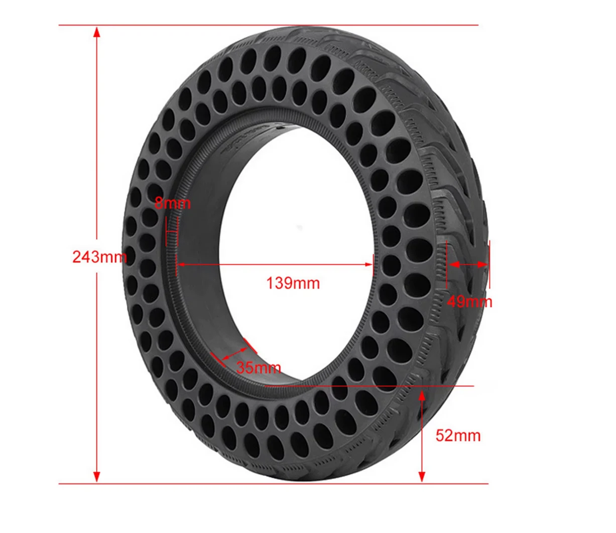 Joyride Honeycomb tyre (solid) – puncture resistant tyre 10×2″. Suitable for replacement of pneumatic tyres (outer and inner) and all 10″ pneumatic tyres . Very well suited to replace 10×2″, 10×2.125 ” and 10×2.25 ” tyres. The inner width(the part that sits on the rim) of this solid tyre is 35 mm. The puncture resistant bead tyre is suitable for all electric scooters with original 10″ tyres, including the following popular electric scooters: Gpad Joyride (Eco, Max and Fix), Joyor X1. The electric scooter bead tyre is the solution when the pneumatic tyres tend to puncture too often and the constant tyre replacement is tiring. If you are struggling to fit an electric scooter tyre on your own, our workshop specialising in electric scooters can help. You can read more about pneumatic VS solid tyres in our blog post.