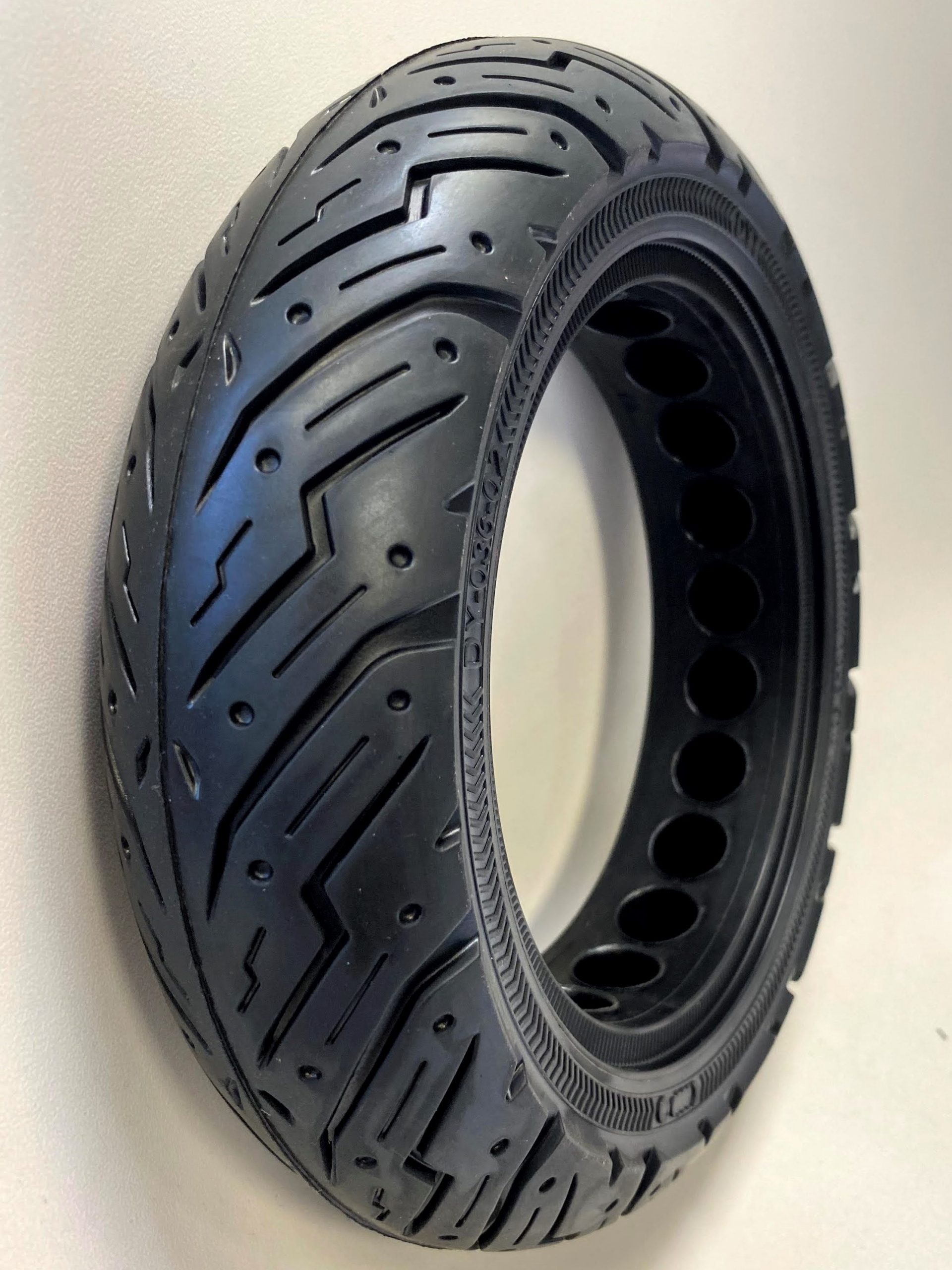 Puncture-resistant 10×2.50″ (solid tyre) for electric scooters. Suitable for 10×2.50″, 10×3.00 ” and 60/70-6.5 pneumatic tyres. The inner width of this tyre (the part that fits on the rim) is 43 mm. The 10×2.50″ puncture-resistant electric scooter solid tyre is a must for the next popular electric scooter: Segway Ninebot Max G30.