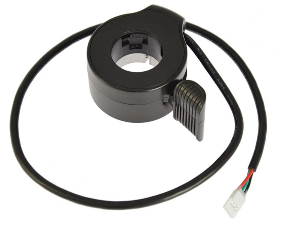Elektritõukeratta gaasipedaal / gaasilüliti (ka gaasinupp, gaas, gaasilink, kiirendaja, kiiruse kontroller). Universaalne varuosa, mis sobib kõigile 22mm diameetriga lenksuga elektrilistele tõukeratastele, mille kontrollerid kasutavad Halli anduriga tõukeratta kiiruse reguleerimist. Gaas töötab 5.0VDC sisendsignaaliga. Vajutades gaasi, saadab andur elektritõukeratta kontrollerile käskluse kiirendamiseks. Elektritõukeratta gaasipedaali vahetusega iseseisvalt hätta jäädes saab aidata meie elektritõukeratastele spetsialiseerunud töökoda.
