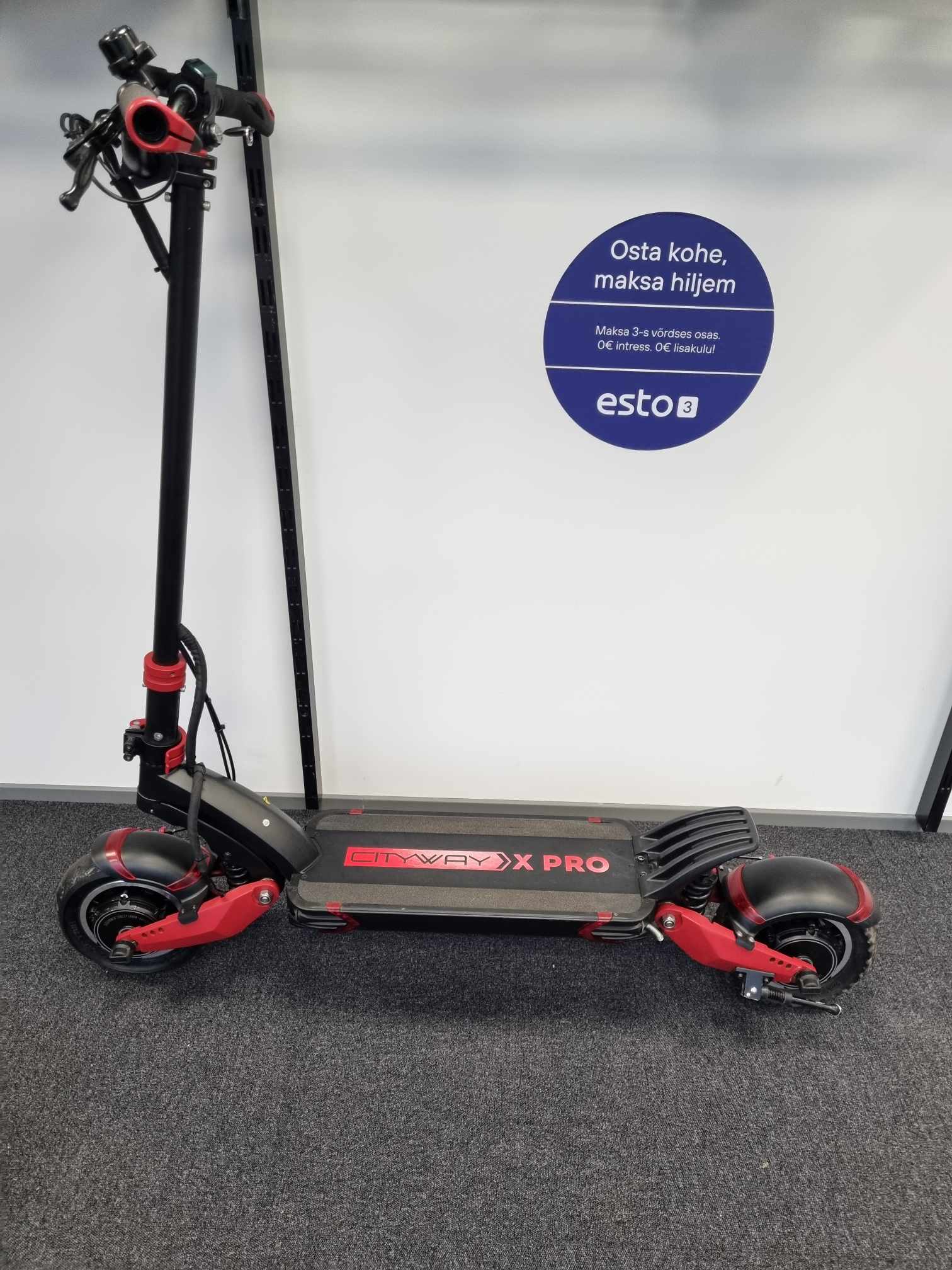 Heas seisukorras Cityway X Pro elektritõukeratas. Kaasa tuleb kaks laadijat, mida on võimalik paralleelselt elektritõukeratta kiireks laadimiseks kasutada. Elektritõukerattal on väikesed kriimud kasutamisest siin-seal. Seisutekk/tallaplaat on pleekinud ning kulunud.