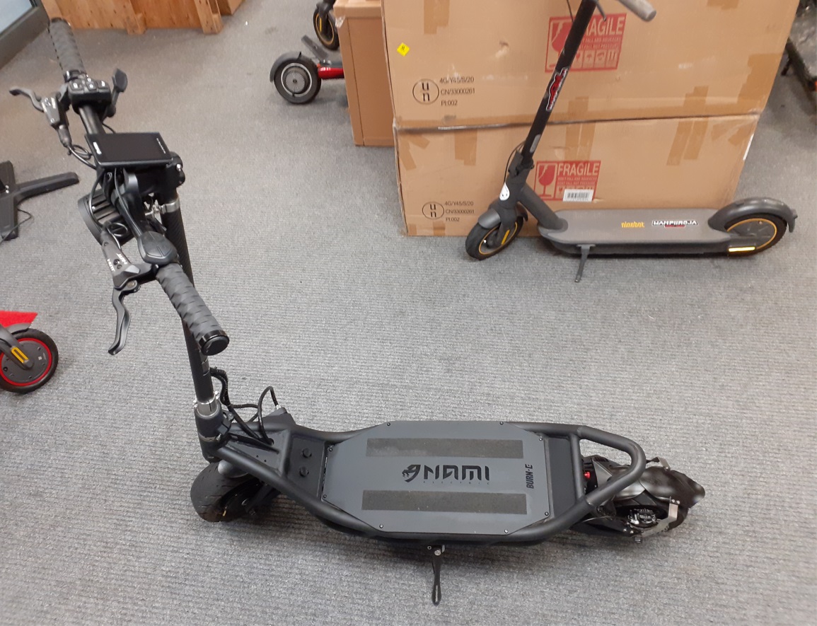 Vähe sõitnud 35Ah / 72V akuga Nami Burn-E elektritõukeratas. Mõned kriimud ja kulumisjäljed raamil. Rehvid ei ole enam täiesti uued, kuid on piisava mustriga, et veel turvaliselt 500-1000km läbida. Elektritõukeratas tuleb 2 aastase Tõuksimaailma garantiiga.