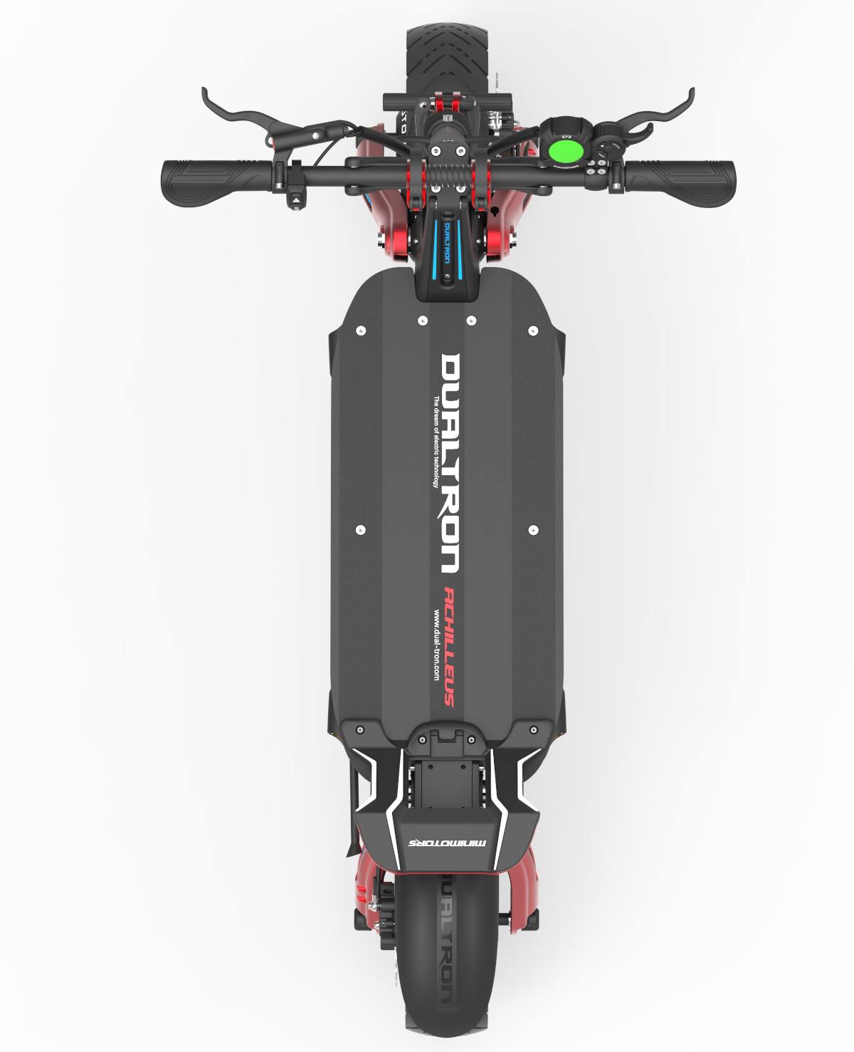 Dualtron Achilleus on Dualtron Thunder -superpotkulaudan pikkuveli. Dualtron Achilles on tyylikäs sähköpotkulauta, jossa on suurikapasiteettinen akku, pienempi kuin isoveljensä, mutta silti erittäin suuri. Korkea syöttöjännite auttaa moottoreita kehittämään paljon tehoa, mikä antaa Achilleus-sähköskootterille voimakkaan kiihtyvyyden ja suuren huippunopeuden. 60V/35Ah akulla varustettu Dualtron Achilleus on yksi suurimmista saatavilla olevista akulla varustetuista sähköskoottereista, ja 75kg painava kuljettaja voi odottaa kulkevansa jopa 120km yhdellä latauksella ECO-tilassa tasaisella, hitaalla nopeudella. Ainoastaan Minimotorsin muut sähköskootterit, Dualtron Thunder, Dualtron X2 ja Storm Limited, pystyvät tarjoamaan suuremman toimintasäteen vielä suuremmilla akuilla .