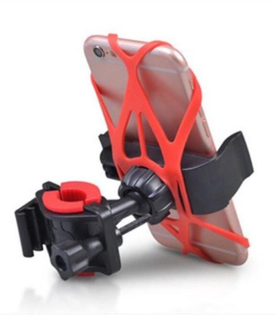 Edullinen puhelimen pidike sähköskootterille / polkupyörälle (puhelimen pidike), jossa on kiinnitysliitin ja kumiset tukihihnat. Puhelimen pidikkeessä on säädettävä kulma. Puhelimen pidike sopii sähköskoottereihin tai polkupyöriin, joissa on halkaisijaltaan 22,2 mm:n linssi.