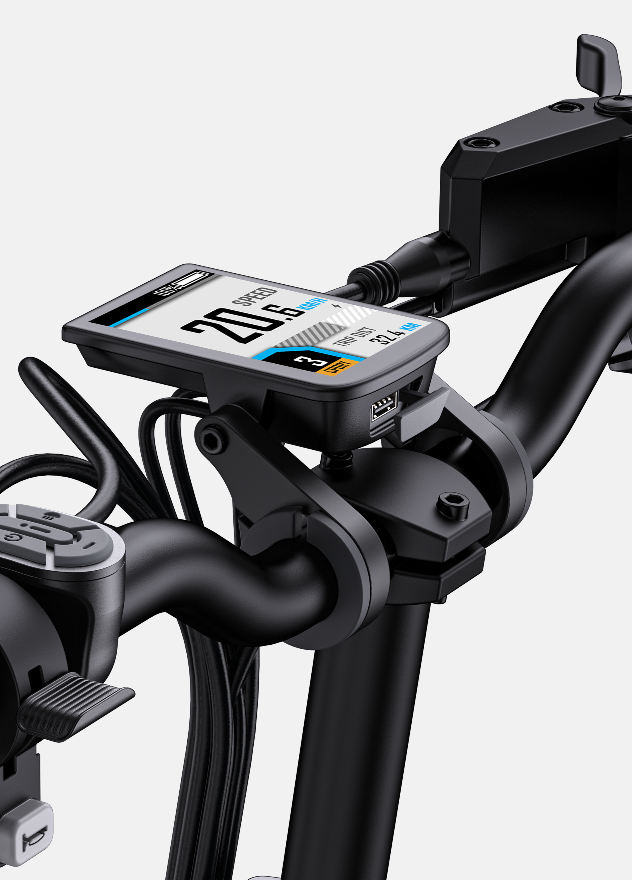 Ohjaus ja näkyvyys on keskitetty keskellä sijaitsevaan 3,5 tuuman värilliseen LCD-näyttöön, joka näyttää nopeuden, tehotason, akun tilan ja ajotiedot yhdellä silmäyksellä. Bluetooth-yhteys yhdistää pyörän ENGWE-sovellukseen, jossa voit tarkastella ajotilastoja ja mukauttaa ominaisuuksia. Engwe-sähköpyörät ja niiden kehittynyt valaistus parantavat päivittäistä turvallisuutta. LED-ajovalo on integroitu elektroniseen äänimerkkiin, joka parantaa näkyvyyttä liikenteessä, kun taas takavalo kirkastuu automaattisesti jarrutettaessa tai äkillisten liikkeiden aikana.