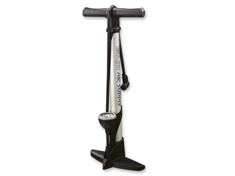 Korkean hyötysuhteen alumiinikoteloinen lattiapumppu Giyo Air Supply GF-35P, jossa on painemittari. Giyo Air Supply -lattiapumppu on 560 mm pitkä ja 230 mm leveä, joten se on erittäin vakaa pumpattaessa suurella nopeudella. Lattiapumpussa on suuri kahva, jonka ansiosta sitä on helppo käyttää ja täyttää renkaat nopeasti. Suurin paine, joka renkaisiin voidaan pumpata, on 11bar / 160PSI. Sähkömoottoripyörissä käytettävien autoventtiilien (AV) lisäksi pumpussa on suuttimet myös Presta- (PV, ”urheiluventtiili”) ja Dunlop- (”vanhanaikainen”) polkupyörien venttiilien pumppaamiseen. Koska sähköskootterin renkaiden mitat ja ilmatilavuus ovat sellaiset, että ne ovat alttiita renkaan sisäisille repeämille iskujen seurauksena, suosittelemme renkaiden paineiden tarkistamista kerran kahdessa viikossa tai ennen jokaista ajokertaa, jos sähköskootterilla ajetaan harvemmin. Renkaita täytettäessä suosittelemme painemittaripumppujen käyttöä, jotta voidaan varmistaa, että renkaiden paine on täsmälleen sähköpotkulautan valmistajan suosittelema. G iyo Air Supply -lattiapumppu, muita pumppuja ja muita tarvikkeita on saatavilla myymälässämme .