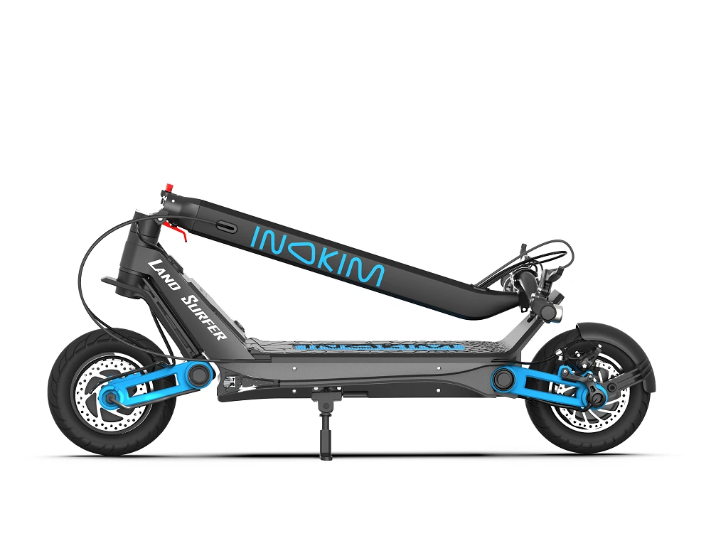 Inokim OX -sarjassa on maksimaalisen mukavuuden takaamiseksi Inokimin patentoitu jousitus, joka on erittäin pehmeä mutta myös erittäin turvallinen sähköpotkulautailussa. Toisin kuin muiden kilpailevien tuotemerkkien iskunvaimentimet, Inokimin jousitus on suunniteltu niin, että jousituksen laskeutumisen jälkeen ei ole epämiellyttävää ”heiluntaa” – maksimaalisen käsiteltävyyden ja turvallisuuden vuoksi.