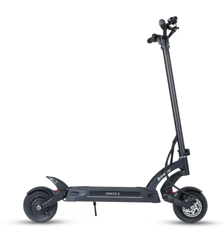 Kaabo Mantis 8 Eco 800W -sähköskootteri, toisin kuin Kaabo Mantis 10 -sähköskootteri, jossa on 10 tuuman pyörät, soveltuu erityisesti lyhyemmille ajajille ja nuorille ajajille, sillä Mantis 8:n ohjaustanko / ohjaustanko on 11 cm matalampi.