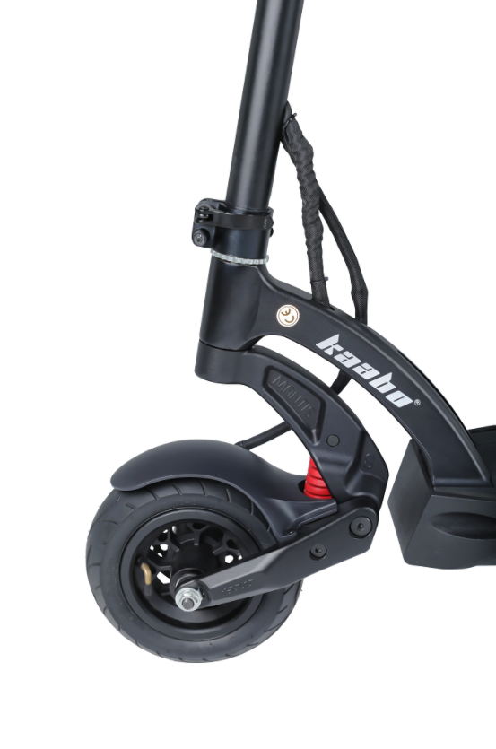 Kaabo Mantis -sähköskootteri on varustettu 8×3.0” renkailla ilman sisäkumia. Verrattuna ilmarenkaisiin, joissa on sisäkumi, nämä auttavat varmistamaan paljon pienemmän riskin renkaiden puhkeamiselle iskujen takia, jotka ovat aiemmin vaarantaneet 8” renkaat moninkertaisesti 10” malleihin verrattuna… Skootteri on myös varustettu tärinää vaimentavasta pehmeästä materiaalista valmistetuilla kahvoilla, jotka urheilullisen ulkonäön lisäksi tarjoavat myös enemmän ajomukavuutta ja auttavat ehkäisemään käsien väsymistä.