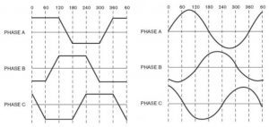 Neliöaaltosäädin kytkee sähkömagneetin yhtäkkiä päälle maksimiteholla, kunnes se on muuttanut asentoaan magneetteihin nähden, ja katkaisee sitten yhtäkkiä kelan virran. Koska syntyvän magneettikentän avulla halutaan ylläpitää käämin virtaa, tällä tavoin kytkeytymällä menetetään melkoinen määrä energiaa, josta osa vapautuu mekaanisena meluna (moottori pitää enemmän ääntä käydessä). Sinimuotoinen ohjain ei tee äkillisiä kytkentöjä vaan useita eripituisia kytkentöjä, jotka tasoitettuna tuottavat sinimuotoisen signaalin, joka on lähellä ideaalia. Tämä auttaa säästämään enemmän energiaa. Kaiken kaikkiaan sinimuotoisilla ohjaimilla varustetut sähköpotkulaudat ovat tehokkaampia. Neliöaaltosäätimellä varustetulla sähköpotkulautalla voi kulkea lyhyemmän matkan samalla akulla.