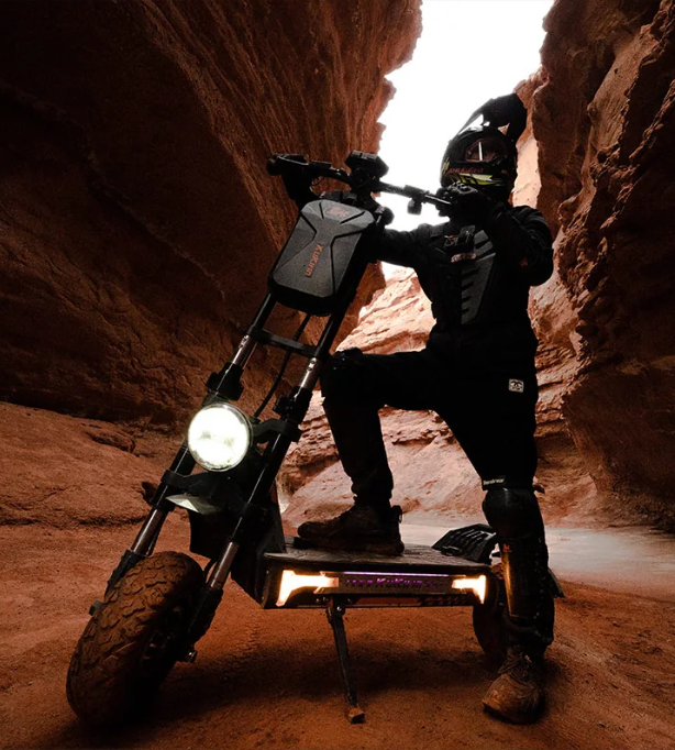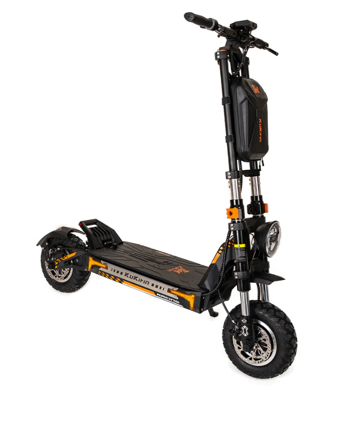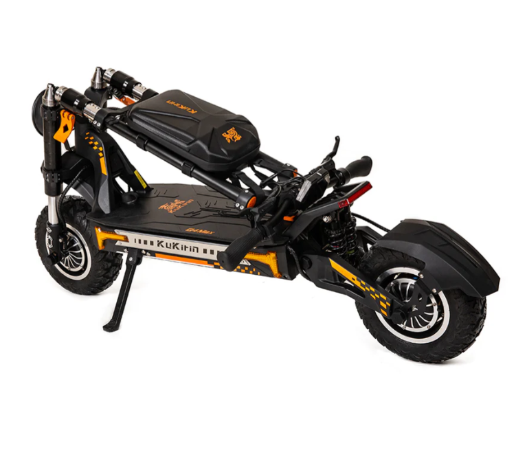 Kugoo KuKirin G4 Max sähköpotkulaut. G4 Max -malli on kaikkien aikojen suurin, painavin ja tehokkain KuKirin-sähköpotkulauta. Se on myös kaikkien aikojen ensimmäinen Kugoon sähköpotkulauta tässä paino- ja kokoluokassa. Kugoo KuKirin G4 Max tarjoaa epäilemättä unohtumattoman ajokokemuksen kaikin puolin. Käyttökokemus voi olla hieman rajallinen kompaktiuden puolella, mutta se on silti erittäin kompakti sähköpotkulauta tässä luokassa. Toisin kuin muissa raskaissa työntömastoissa, Kugoo G4 Maxissa on linssimallinen puomi, joka voidaan lukita runkoon kuljetusta varten ja joka voidaan silti nostaa puomista, eikä kuljetus aina tarkoita (pölyisen) sähköpotkulaudan kantamista. KuKirin G4 Max -sähköskootterit on varustettu 60V 35,2Ah akulla ja kahdella tehokkaalla sähkömoottorilla.