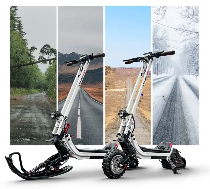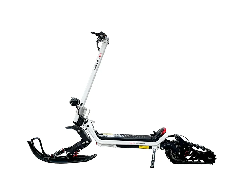DrveTion G63 -sähköpotkulauta maastoajoneuvo on innovatiivinen monikäyttöajoneuvo, joka on suunniteltu tarjoamaan ajokokemuksen lumella, tiellä ja maastossa. DrevTionin talvisähköpotkulauta on varustettu tehokkaalla 1500 W:nharjattomalla moottorilla, joka voi saavuttaa jopa 3000 W:n huipputehon , joka tarjoaa sekä runsaasti tehoa että vääntöä, joten se soveltuu sekä talvimaastoon että haastavaan maastoajoon. DrveTionin telaketjullisen sähköskootterin nopeus on jopa 25-55 km/h ajo- ja maastotilasta riippuen, ja 48V/20,8Ah akku tarjoaa jopa 35 km:n ajoalueen lumella yhdellä latauksella ja jopa 60 km:n ajoalueen maastotilassa (olosuhteista riippuen). DrveTion G63:n ainutlaatuinen modulaarinen muotoilu mahdollistaa nopean siirtymisen normaalitilasta lumitilaan. Etupyörä korvataan suksella ja takapyörä kumitelalla, mikä lisää vakautta ja pitoa liukkailla, jäisillä ja lumisilla pinnoilla. DrveTion-sähköskootterit on valmistettu hiiliteräksestä ja vahvasta alumiiniseoksesta, mikä takaa kestävyyden ja painaa vain 49 kg.