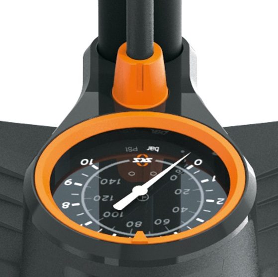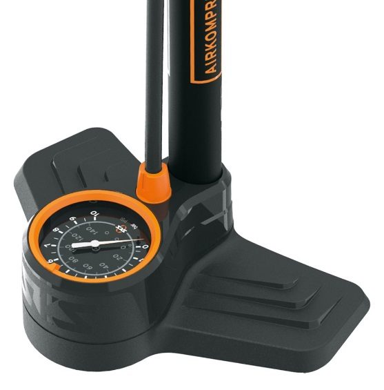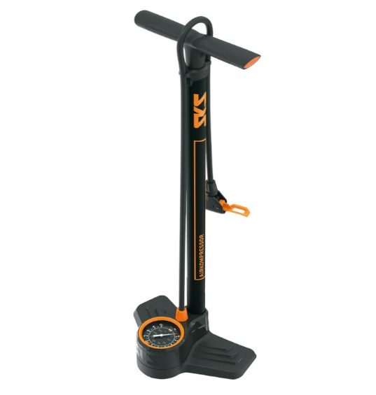 Lattiapumppu SKS Ilmakompressori 10.0, suurin pumpattava paine 10bar / 144PSI. Lattiapumppu on varustettu suurella halkaisijaltaan 80 mm:n painemittarilla ja pitkällä letkulla tarkkaa painetta varten. Lattiapumppu on suunniteltu automaattiventtiilien pumppaamiseen (kaikki sähköiset toimilaitteet). Pumpun putki on valmistettu teräksestä ja kotelon ylä- ja alaosat muovista. T-muotoinen pumppukahva ja leveä jalkatuki mahdollistavat nopean ja mukavan renkaiden pumppaamisen.