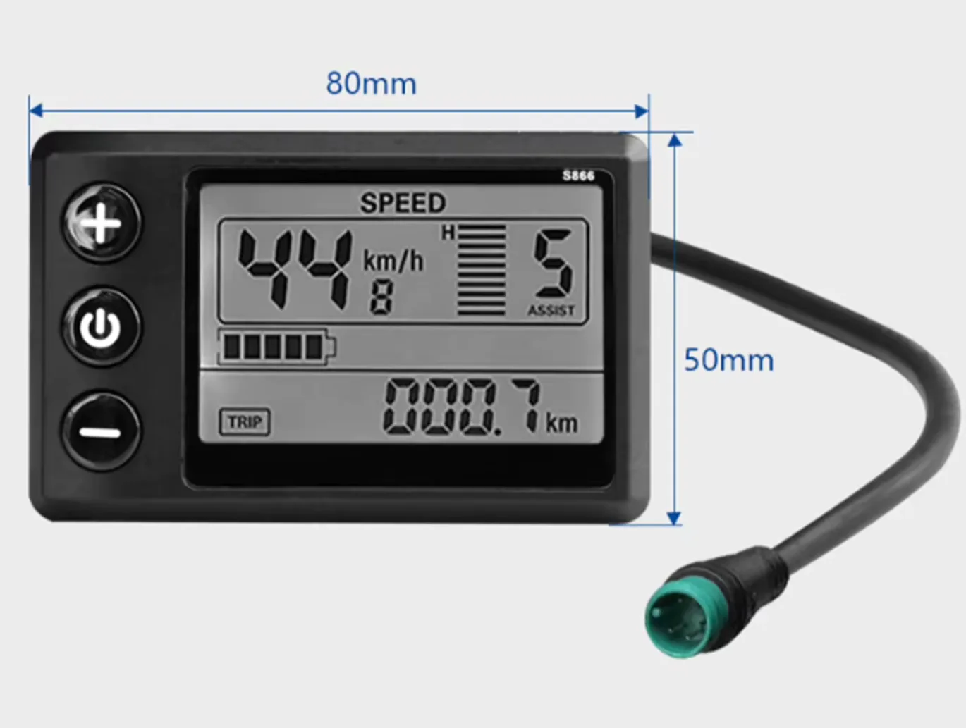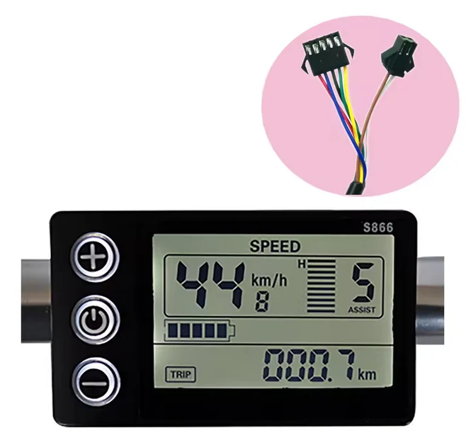 Näyttö S866 (myös display) sopii moniin sähköpyöriin ja sähköpotkulautoihin. Näyttö toimii 24–48 V:n jännitteellä.