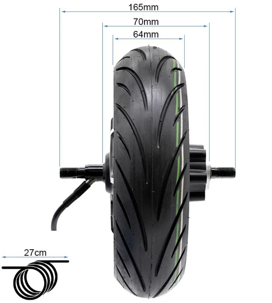 Niu KQi3 Pro -moottori 48V 350W (takapyörä, moottoroitu pyörä), teho 350W (huippu 700W), pyörän halkaisija 9,5 tuumaa. Moottori on renkaan kanssa.