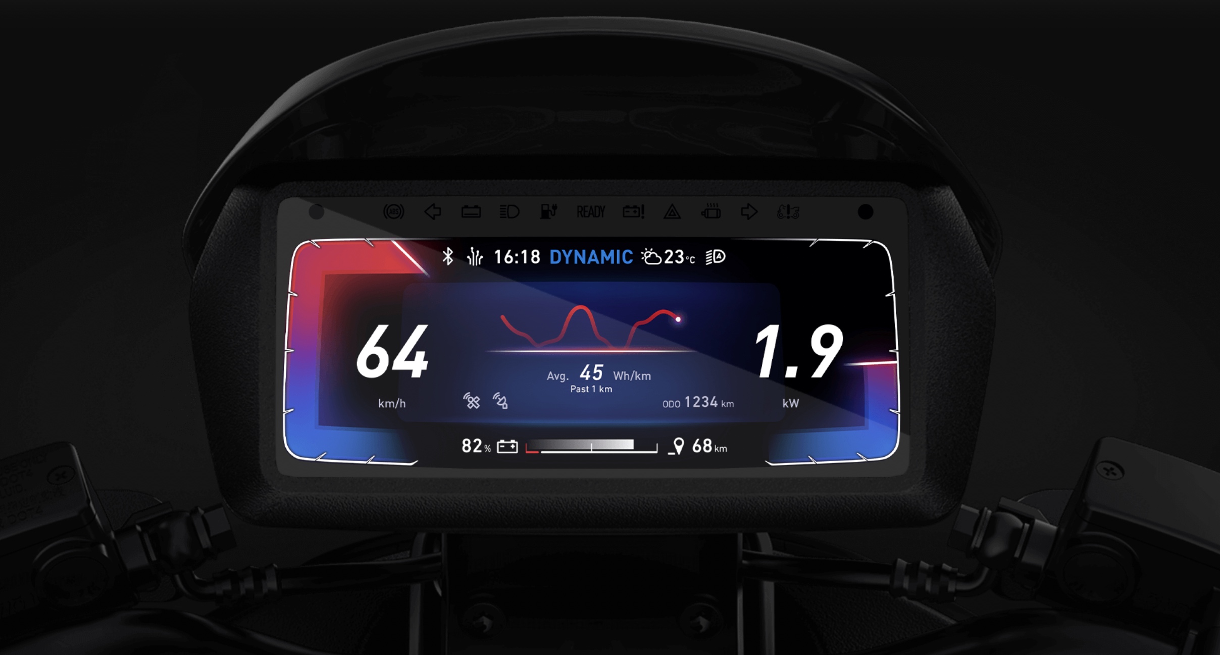 NQi GTS -sähköskootteri on varustettu nykyaikaisella TFT LCD-näytöllä, jonka käyttöliittymän suunnittelua omistaja voi helposti muuttaa. NQi GTS -sähkömopo on suunniteltu siten, että TFT LCD-näyttö on mahdollisimman helppolukuinen ja antaa parhaan mahdollisen yleiskuvan tarvittavista tiedoista. Sähkömoposkootteri NQi GTS näyttää tietoja, kuten aktiivisen ajotilan, nopeuden ja akun varaustason sekä eri toimintojen tilan ja ympäristön lämpötilan.
