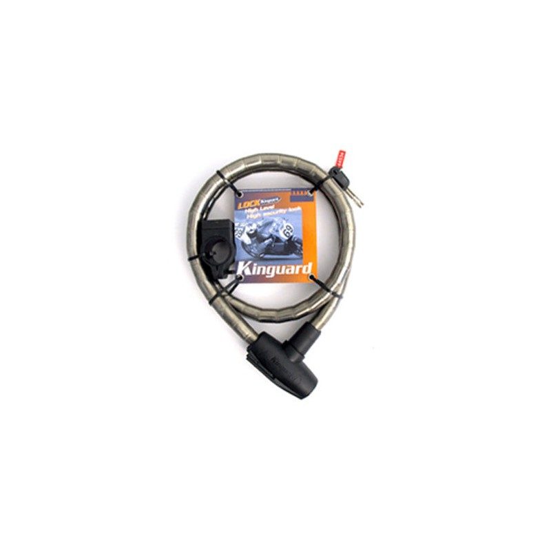 Siisti vaijerilukko Kinguard polkupyörälle / sähköskootterille. Lukon teräsvaijeri on 18mm paksu ja 1,2 metriä pitkä. Mukana tulee myös runkopidike. Pidikkeen avulla lukko on erittäin helppo kiinnittää polkupyörän istuintolppaan ja joidenkin sähköskoottereiden runkoihin / ohjaustankoon. Vaijerilukko on päällystetty kumikerroksella, joka estää lukkoa vahingoittamasta maalia, kun se on kosketuksissa lukittavan polkupyörän tai sähköskootterin runkoon. Köysilukot ovat melko kevyitä ja kompakteja, ja ne ovat edullisin tapa lukita kevyt polkupyörä turvallisesti hyvin tai kohtalaisen ahtaissa paikoissa. Hieman kalliimpi ja turvallisempi vaihtoehto on U-lukko. Sen mukana toimitetaan 2 avainta.