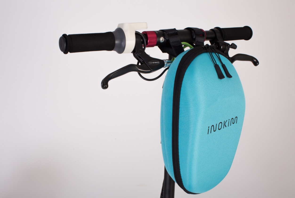 Inokim-sähköskootterilaukku (myös etulaukku), sininen, Inokim-merkki. Inokim-sähköskootterin linssilaukku kiinnittyy sähköskootterin linssin ja ohjausputken ympärille säädettävillä klipseillä. Ohjaustankolaukku sopii kaikkiin Inokim-sähköskoottereihin. Tarjoamme myös samaa laukkua: