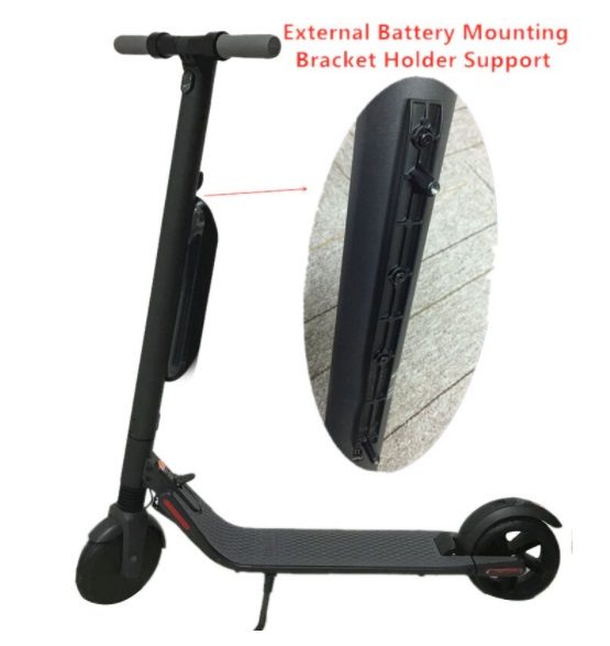 Segway Ninebot ES lisäakun pidike (myös ulkoinen akun pidike runkoon, akkukehikko). Ulkoinen akunpidin tarvitaan, jos sinulla on Ninebotin lisäakku, mutta sen mukana ei tullut akkukehystä, jota tarvitaan akun kiinnittämiseen. Ulkoinen akunpidike on myös vaihdettava, jos pidikkeen sisällä olevat ruuvikierteet ovat vaurioituneet tai jos akunpidike on vääntynyt ulkoisen iskun vaikutuksesta, eikä akku saa kunnolla kiinni (suosittu vika numero 42 syy).