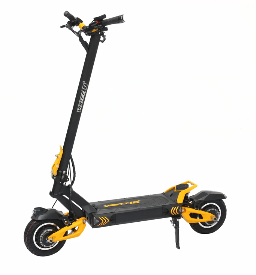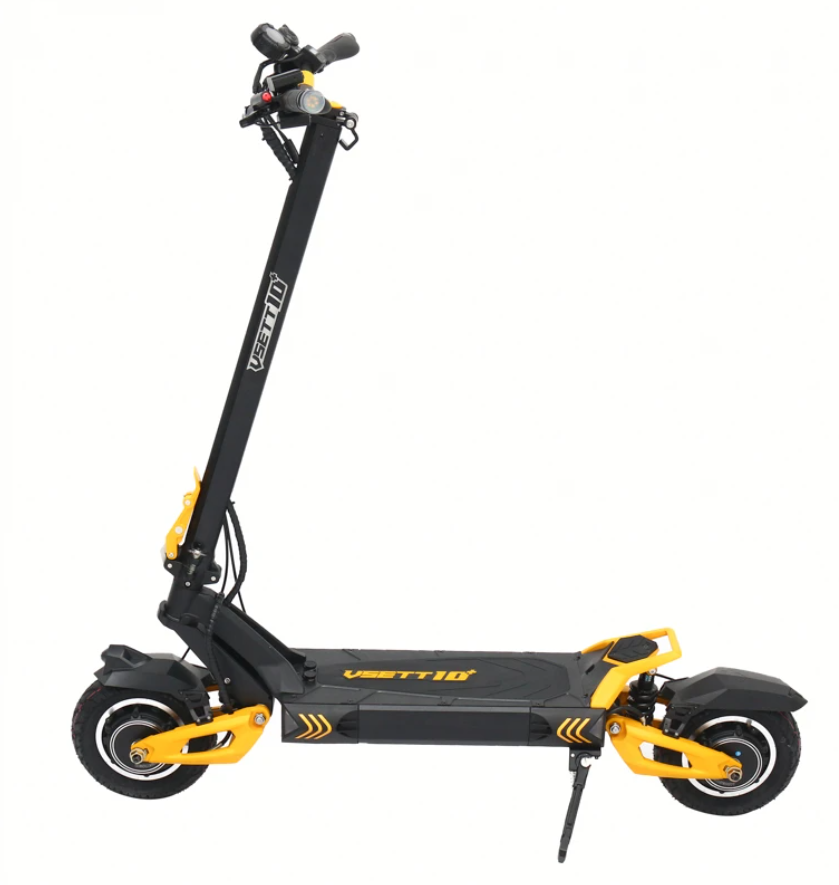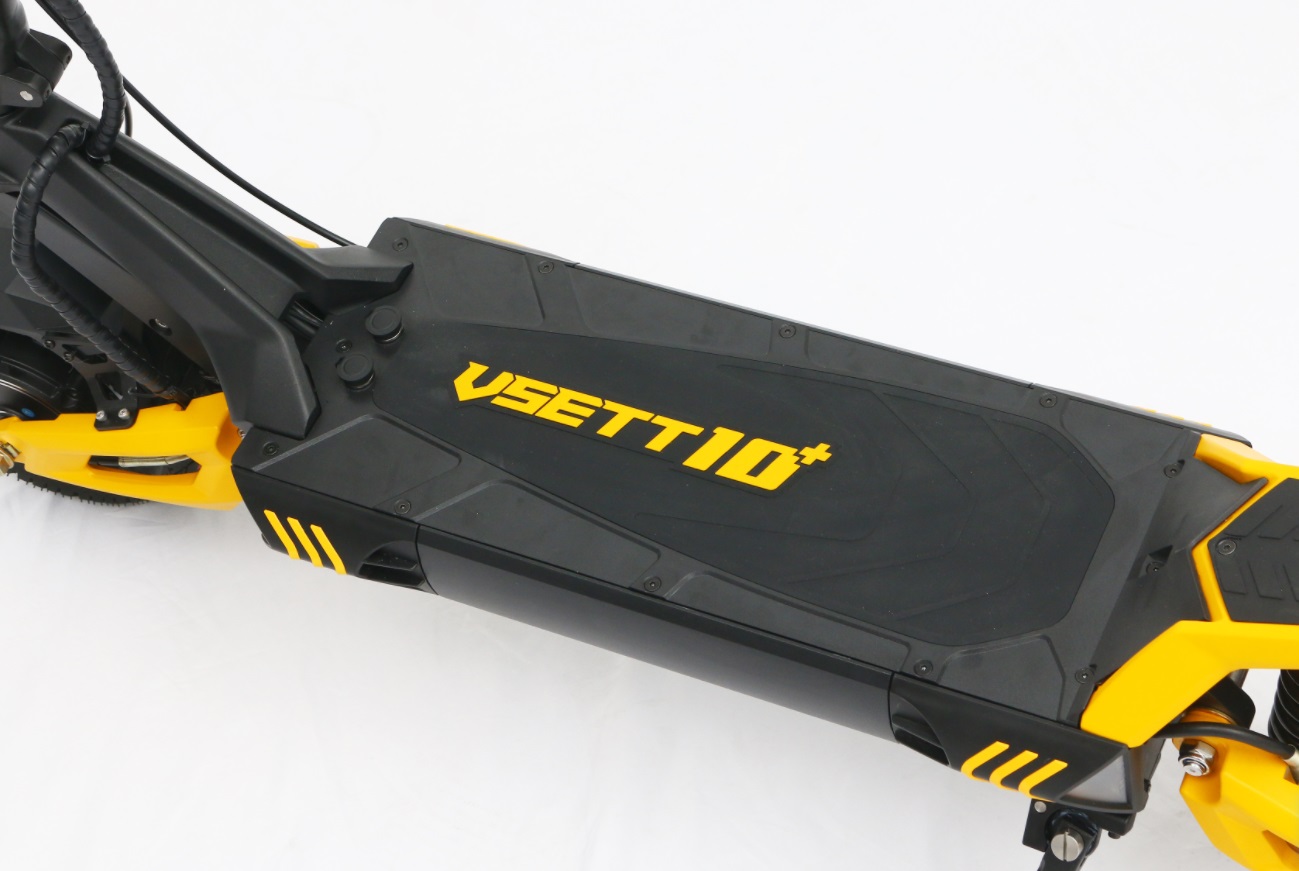 Ensimmäistä kertaa tässä paino- ja hintaluokassa 10+-mallissa on myös IP54-vesisuojaus, mikä on tärkeää Suomen ilmastossa. Skootteri on saatavana kolmella eri akkukapasiteetilla – 20,8Ah, 25,6Ah ja 28Ah. Suuremmasta, 28Ah:n akkuversiosta käytetään usein nimitystä Vsett 10+R. Vsett 10+ -sähköskootteri muistuttaa uhmakkaalla ulkonäöllään ja kelta-mustalla väriyhdistelmällään ampiaista, joka on aina valmis hyökkäämään vastustajansa kimppuun. Tämä ilme on erittäin osuva, sillä sähkökäyttöisessä rattaassa on ”Sport”-tila, joka antaa välittömän tehohypyn, jonka ansiosta se voi yllättäen ylittää nopeuden useimmissa 11” pyörillä varustetuissa raskaissa sähkökäyttöisissä rattaissa. Skootterissa on kaksi moottoria, joiden nimellisteho on 500W (huipputeho 1000W), jolloin kokonaisteho on 1000W (tai 1kW ) ja nopeus25km/h. Toimintasäde on jopa 130 km 75 kg painavalla kuljettajalla taloudellisimmassa Eco-tilassa.