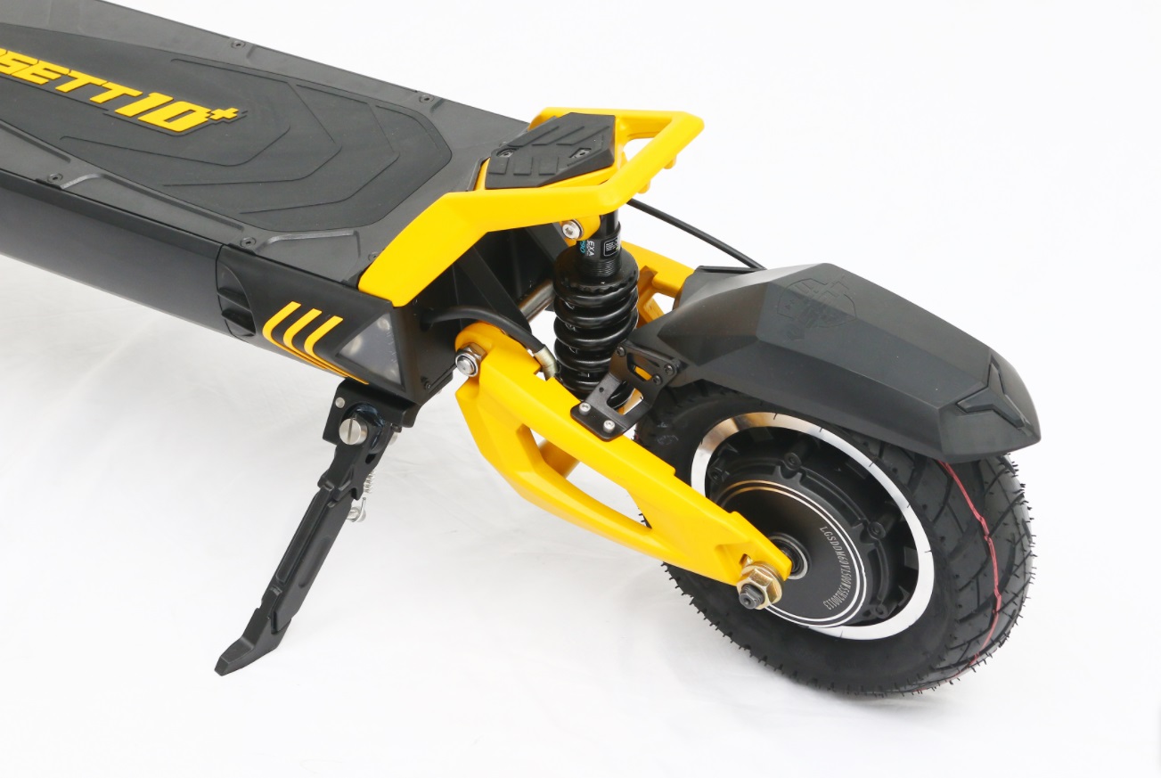 Vsett 10+- ja Vsett 10+R-sähköpotkulaudoissa on säädettävät hydrauliset hybridijousitukset edessä ja takana. Tämä tekniikka mahdollistaa jousituksen ja hydraulisten iskunvaimentimien parhaiden ominaisuuksien yhdistämisen, ja jousitus voidaan säätää erittäin pehmeäksi ja pyöriväksi, erittäin jäykäksi ja vakaaksi tai mitä tahansa siltä väliltä. Lisäksi ensimmäistä kertaa sähköpotkulaitteiden historiassa on käytetty vakiomallisia 165 mm:n iskunvaimentimia, jolloin harrastajat voivat vaihtaa iskunvaimentimet mieleisekseen.
